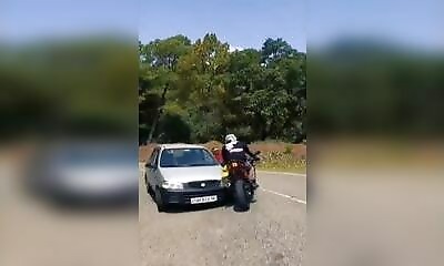 Un motard faisant la course avec des comparses n'hésite pas à prendre la route entière pour lui, et rencontre à un moment donné une voiture en face de lui. Voyons ce qui lui arrive.