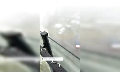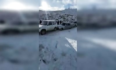 Sur une route de montagne au Dagestan, dans le Caucase russe, c'était le chaos total à cause du verglas. Plusieurs voitures se sont percutées puis ont glissé en file indienne sur la neige, impossible de freiner ou de dir...