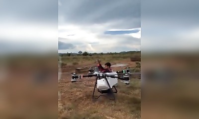C'est complètement dingue : un gars a bricolé un drone DJI d'épandage agricole pour s'envoler avec. Il a découpé la partie haute du réservoir à pesticides pour pouvoir s'asseoir dedans. Et ça a marché ! Le drone a décoll...