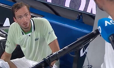 Daniil Medvedev a reçu une amende de 12000 dollars pour son mauvais comportement face à l'arbitre lors de sa demi-finale de l'Open d'Australie gagnée vendredi contre Stefanos Tsitsipas. Comme le montre cette vidéo, le jo...
