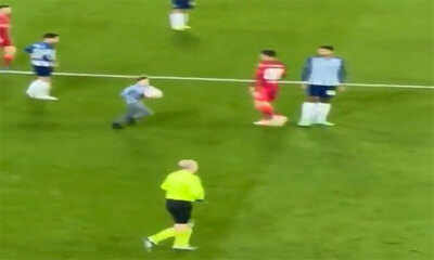 Ce mercredi 25 novembre 2021, lors de la rencontre de football pour la Ligue des Champions entre Liverpool et Porto au stade d'Anfield à Liverpool, un môme a fait irruption sur le terrain et pris le ballon dans les mains...