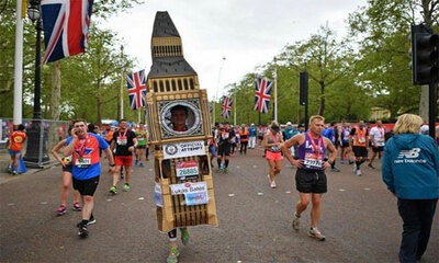 Lukas Bates qui arborait un joli déguisement de Big Ben a eu besoin d’aide pour passer la ligne d’arrivée du marathon de Londres en raison de son long clocher. Selon la BBC, Lukas Bates tentait de battre le record du tem...
