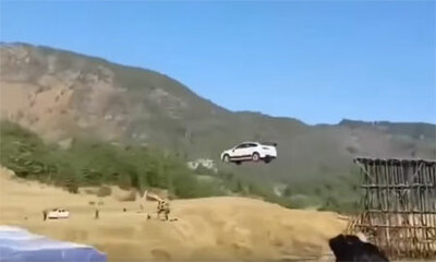 Le pilote Li Qilong effectue un saut en voiture par-dessus le fleuve Yangtsé avec une distance de 76 mètres de long et bat le précédent record chinois établi par le pilote Ke Shouliang en 1997. Avec un saut de 76,2 mètre...
