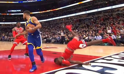 Lors d'un match entre les Chicago Bulls et les Golden State Warriors, le joueur Kris Dunn s’est mal agrippé à l’arceau et est retombé la tête la première sur le parquet. Malgré la chute, le sportif s’en tire avec seuleme...