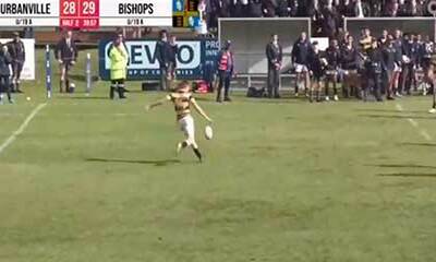 Lors de la rencontre entre Les U19 de Durbanville et les U19 de Bishops pour un match universitaire de rugby en Afrique du Sud, le score était de 28 à 29 à la toute fin de la rencontre. Durant les arrêts de jeu, le joueu...