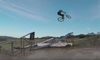 Pour réussir son MTB, le sportif américain, Barry Nobles, originaire de Wetumpka en Alabama, s'est aidé d'un ami en moto-cross. Il s'est fait tracter comme le ferait un skieur nautique jusqu'au tremplin pour ensuite pren...