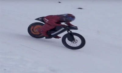 Eric Barone, cascadeur et VTTiste Français, a battu hier le record du monde de vitesse à VTT sur neige avec une pointe à plus de 227 km/h. Le précédent record de 223.3 km/h était détenu par lui-même tout comme les 6 préc...