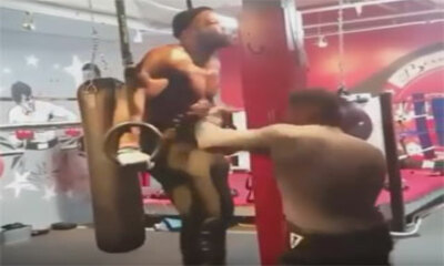 Dans une salle de gym aux États-Unis, un homme se suspend sur des anneaux et contracte ses abdominaux pour servir de sac de frappe. Alors question ? S'agit-il d'un exercice pour renforcer ses abdominaux ? Pour compenser ...