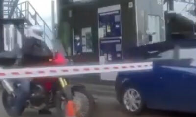 Un motard assez impatient ne veut pas payer le péage. Pour cela, il tente de forcer la barrière comme vient de faire un autre deux-roues en profitant d'un automobiliste. Mais forcer de constater que notre motard est un R...