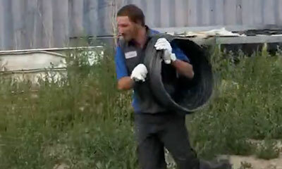 Au brésil, un fan du jeu vidéo Monkey Ball a eu la mauvaise idée de s'introduire dans un pneu de tracteur. Alors qu'il dévale une pente raide, on peut voir ses amis lui courir derrière. Mais monsieur n'avait pas pensé à ...