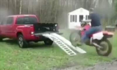Le kéké du jour veut tenter un wheeling sur la route. Alors qu'il regarde que la police n’est pas présente, notre motard se lance dans une belle roue arrière. Mais notre abruti va rater son wheeling pour venir perdre le ...