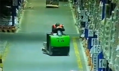 Dans un entrepôt, un employé d’une société s’endort sur un transpalette électrique alors qu’il circule dans l’usine. Celui-ci vient percuter alors un rack et provoque la chute de plusieurs de marchandises qui semble pert...