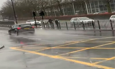 A Londres par temps de pluie, deux piétons se font généreusement mouiller par plusieurs voitures alors qu’ils attendaient au bord d'une route a coté d'une grosse flaque d'eau. Ils font passer plusieurs seconde de galères...