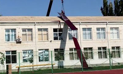Lors de la réparation du toit d'une école en Russie, un grutier a mal placé les feuilles de toiture. Le 4 octobre 2019 à Staroshcherbinovskaya, un employé a heurté une gouttière pour ensuite faire chuter toutes les feuil...