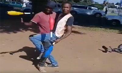 Deux jongleurs montrent leurs agilités pour se passer leurs massues durant des sessions de jonglage. Dans une rue en Afrique du Sud, deux hommes sont filmés par un passant qui découvre ces deux talentueux jongleurs qui r...