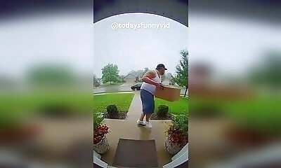 Un voleur de colis tente de récupérer un paquet laissé devant une maison. Il s’approche du porche, le prend rapidement et repart en courant. Sauf que le paquet était en fait un piège.