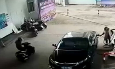 Le Karma ! En Asie, la caméra de vidéo-surveillance a filmé la scène insolite montrant un voleur piquer un sac à main dans une voiture. En effet, il profite que la femme fasse le pleine d’essence pour ouvrir la portière ...