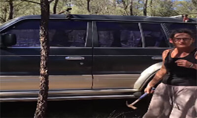 La drogue ce n'est pas bien ! Une femme essaie de casser la vitre d'un SUV Mitsubishi Pajero avec un marteau, car elle déclare avoir oublié ses clefs à l'intérieur du véhicule et pensant que la fermeture automatique a ét...
