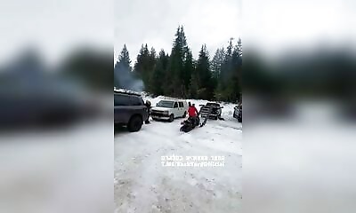 "Hey les gars, regardez ma nouvelle rampe pour charger ma motoneige dans mon pickup. Elle va vous étonner !"