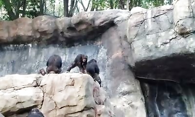 Dans un zoo, un petit chimpanzé fait l'erreur de lancer son caca sur un visiteur, et sa mère ne tarde pas à le réprimander... Comme quoi, recevoir une branlée maternelle est universel !