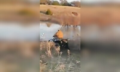 Sur son quad, cet homme veut montrer de quoi il est capable en traversant une rivière.