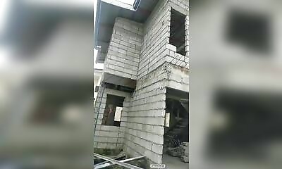 Tout bon bricoleur le sait, pour une bonne stabilité du mur, les parpaings doivent être placés en quinconce. Ici, alors qu'une maison est quasiment terminée, 2 visiteurs s'aperçoivent que tout est à refaire… (les voix on...