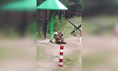 Un gardien de l'armée russe est brutalement réveillé par des camarades et offre un spectacle hilarant.