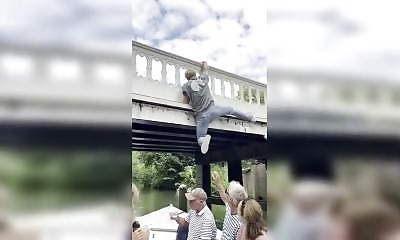 Dans un aéroport, un gars complètement bourré tente de fuir en sautant par-dessus une rambarde. Mauvaise idée. Lol.