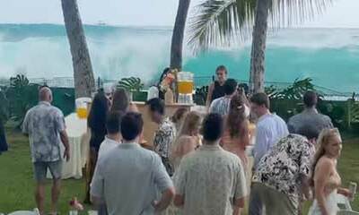 Lors d’un mariage au Palais Hulihe'e à Kailua qui est un emplacement idyllique à proximité de la plage de Waikoloa, celui a été chamboulé par une vague. En effet, l’ouragan Darby a envoyé une belle houle du sud sur toute...