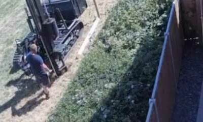 Un homme qui travaille dans un champ est chargé de planter divers poteau afin d'établir un périmètre puis de poser des barbelés. Afin de l'aider, il utilise une machine qui enfonce le poteau elle-même dans la terre. Prob...