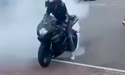 Dans cette vidéo qui se déroule aux États-Unis, un motard s’est faufilé au milieu d’un groupe de supporters et s’est mis à faire un gros burn. Mais l’homme va vite être repéré et calmé par des policiers à vélo qui ne von...