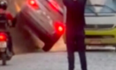 Un homme au volant Jeep Compass essaie de doubler un bus sur une petite route au Brésil en roulant avec contre le flanc de la falaise. Pourquoi ? Car, il ne voulait pas attendre et semblait pressé d’arriver à l’hôtel ave...