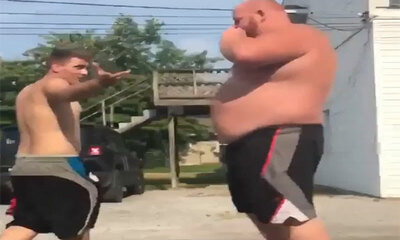 Généralement quand on voit le gabarit de ces gars on préfère prendre la fuite et le remercier gentiment. Mais ce n'est pas le cas de Joe qui chaud patate et sûr de sa performance physique actuelle décide de vouloir affro...