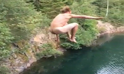 Avoir la diarrhée c’est chiant et cet homme a voulu tirer profit de ce problème de digestion. Pour cela, il se met tout nu et réalise un incroyable saut dans un lac depuis une falaise tout en libérant un long étron. C'es...