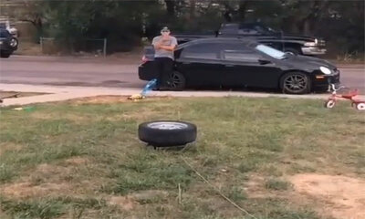 Kevin, Régis et Roger ont une idée de génie de projeter dans les airs une roue de voiture avec l’aide d’un airbag. Placé sur la pelouse, ils font exploser le dispositif de sécurité et faire voler une roue. Problème, ils ...