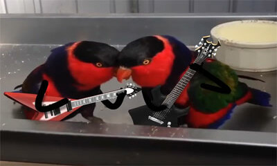 La relève du métal et rock est là avec ces perruches qui jouent de la guitare électrique. Il s’agit d’un doodle réalisé par LeopARTnik. Et la musique est "Higher Octane" du groupe Vans in Japan.