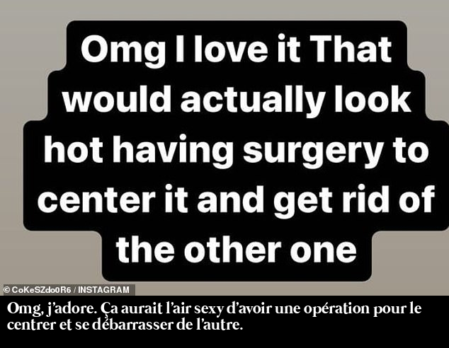 Blague ou non, elle envisagerait de se faire retirer l'implant qui a éclaté et centrer celui qui reste au milieu de la poitrine. Ses fans ont exprimé leur inquiétude pour sa santé et l'ont exhortée à cesser de se faire opérer.