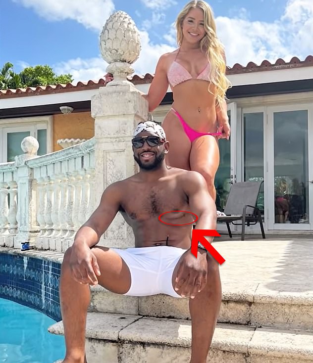 Le mannequin Only Fans Courtney Clenney (en haut) a poignardé à mort son petit ami Christian Obumseli (en bas) après avoir plongé un couteau quelques centimètres au-dessus d'un tatouage à son nom.