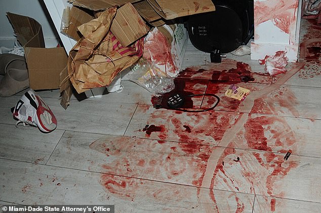 Image de la scène de sang dans l'appartement de Clenney et Obumseli à Miami après l'agression mortelle