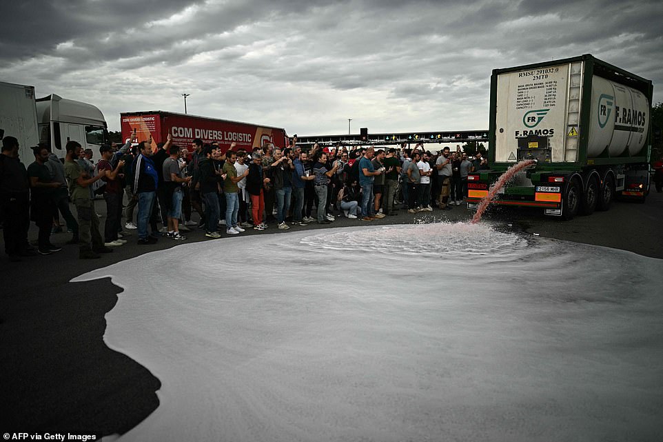 Hier, près de la frontière franco-espagnole, au péage de Le Boulou, des vignerons mécontents ont intercepté des camions transportant du vin espagnol bon marché. Ils ont déversé des litres de vin sur la route, brisé des caisses entières et même allumé un feu improvisé avec des caisses de tomates et des pneus. Frédéric Rouanet, président d'un syndicat local de vignerons, a déclaré que cette protestation s'inscrivait dans le cadre d'une "guerre économique" contre ceux qui nuisent aux vignerons en difficulté en important du vin étranger. Cette manifestation intervient en réponse aux importations à bas prix menaçant les vignerons français.
