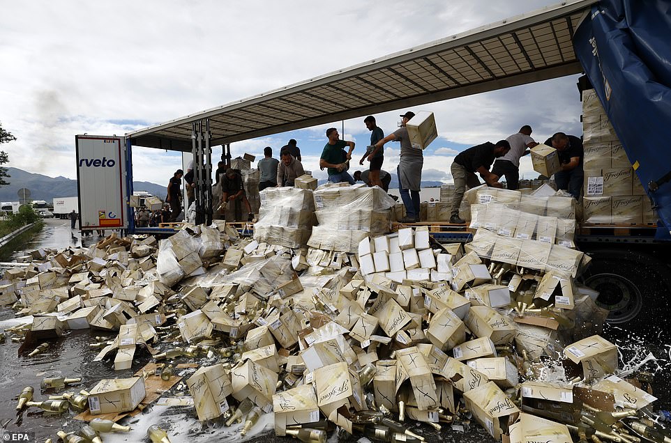 Agricultores franceses destrozan la carga de camiones españoles en Le Boulou, al sur del país vecino y cerca de la frontera con España.pic.twitter.com/RuKywsgrnY