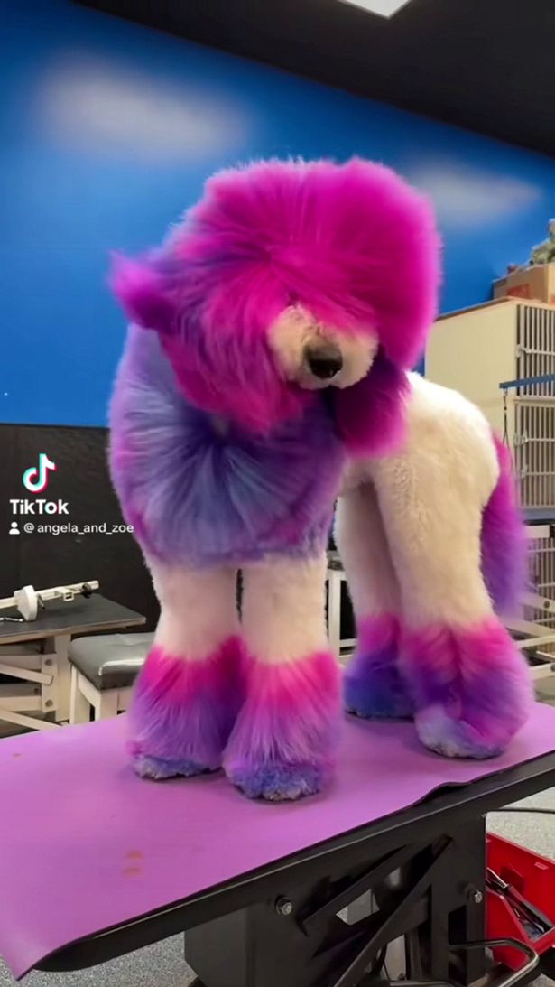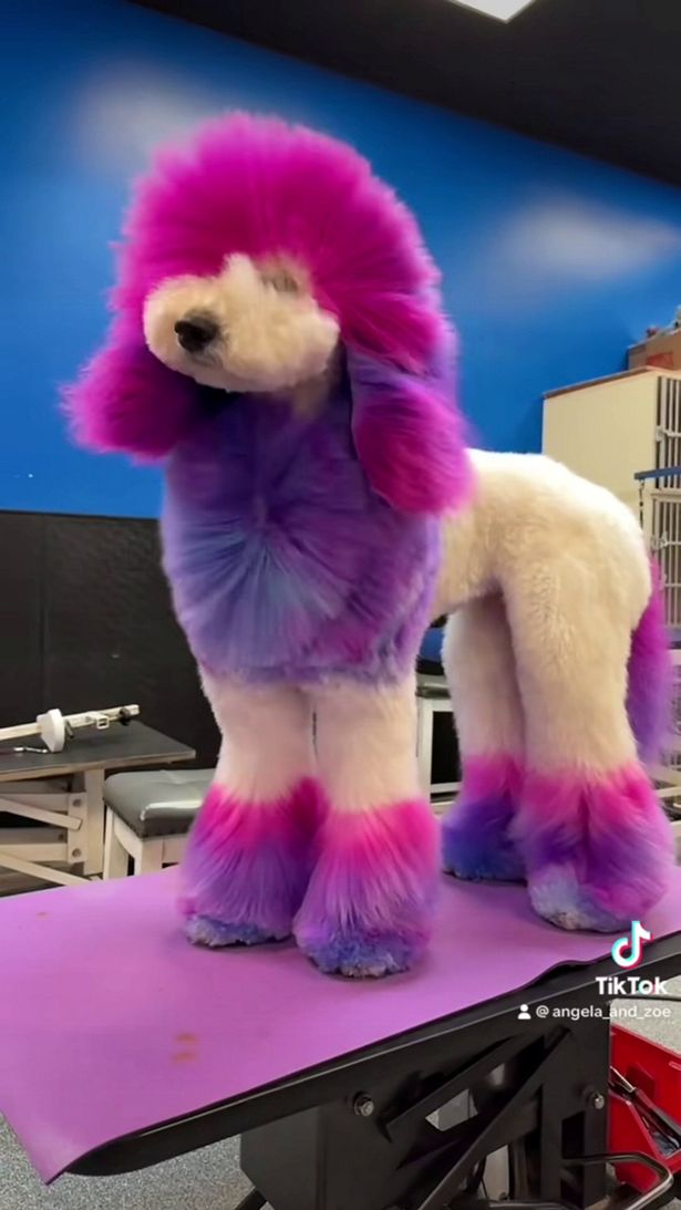 Vous savez, on a tous nos petits plaisirs coupables, non ? Angela Schoonover, une propriétaire de chien de 42 ans, a certainement le sien. Chaque année, elle débourse 400£ (465 euros) pour teindre son caniche, Zoe, en différentes couleurs pour correspondre à ses accessoires. Zoe, une touche de gaieté en bleu, rose et violet, apporte sa dose de couleur dans la vie de Angela. Bien sûr, les critiques sur Internet ne manquent pas, avec des internautes qualifiant cette habitude de "cruelle". Mais Angela, qui possède le Muse Dog Spa à Carlsbad, en Californie, reste inébranlable face à ces reproches. Selon elle, Zoe, bien qu'incapable de donner son avis sur sa couleur de fourrure, est heureuse et aimante. De plus, les teintures utilisées sont 100% véganes, sans danger pour les animaux et ne sont en aucun cas des teintures pour cheveux humains.