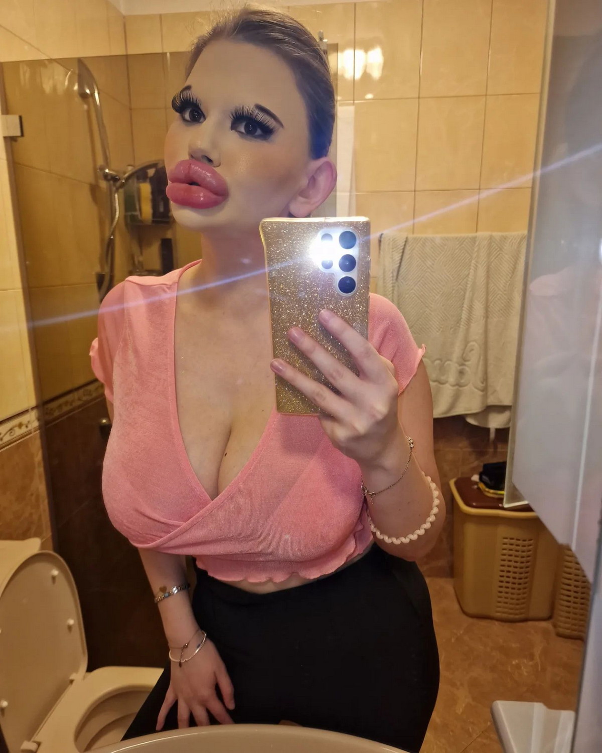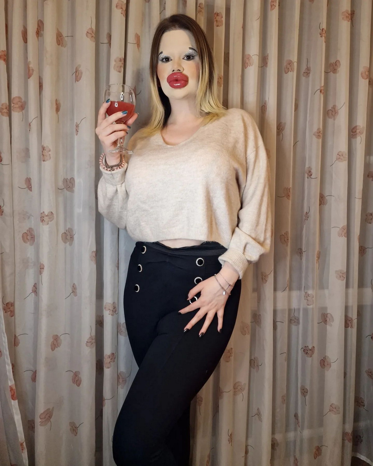 Andrea Ivanova, originaire de Sofia en Bulgarie, est devenue célèbre pour ses lèvres incroyablement gonflées, mais cela ne suffit pas pour elle. Elle souhaite maintenant les agrandir encore plus pour ressembler davantage aux poupées Bratz. Cependant, certains fans craignent que ses lèvres ne finissent par éclater. Depuis 2018, Andrea a commencé à modifier son apparence en utilisant des fillers pour ses lèvres, son menton et sa mâchoire. Elle a dépensé plus de 1500 dollars pour un menton "sculpté" et vise maintenant un nouveau record en augmentant à nouveau la taille de ses lèvres chaque mois. Cependant, elle ignore les avertissements des professionnels de santé et de ses fans.