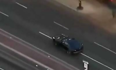 Course-poursuite sur les autoroutes de Los Angeles, États-Unis, et soudain : la Jaguar roule toute seule, sans conducteur. Le gars avait sauté du véhicule en laissant la boîte en Drive, planqué sous un pont pour échapper...
