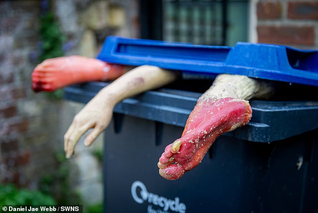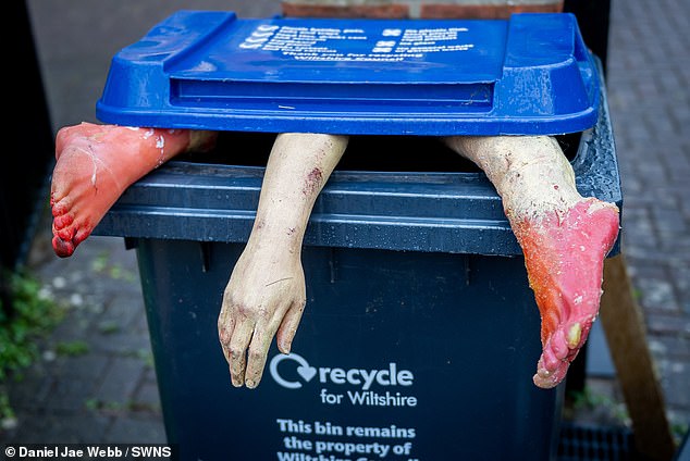 La police est intervenue en urgence dans une rue calme de Devizes (Royaume-Uni), suite à des signalements concernant des parties de corps humain semblant dépasser d'une poubelle. Ces membres, réalistes, étaient en réalité des faux, placés par un farceur qui souhaitait faire une blague à ses voisins. Une fois sur les lieux, les officiers ont inspecté une main et deux pieds artificiels qui paraissaient extrêmement vraisemblables. Le blagueur a avoué que c'était une plaisanterie qui avait mal tourné. "C'était juste une plaisanterie qui a dégénéré", a-t-il déclaré.