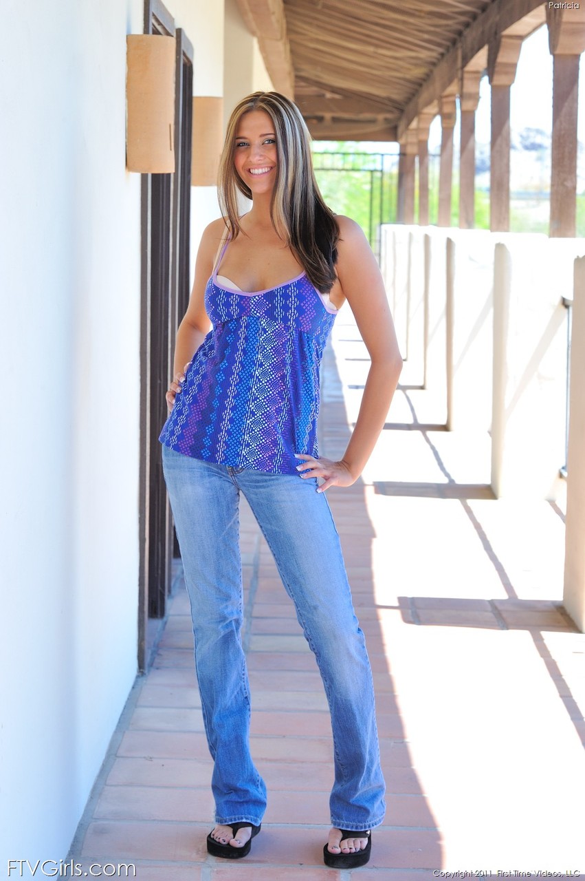La belle Patricia dévoile ses gros seins et joue avec sa chatte rasée en extérieur.