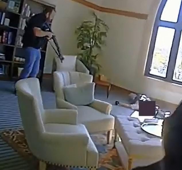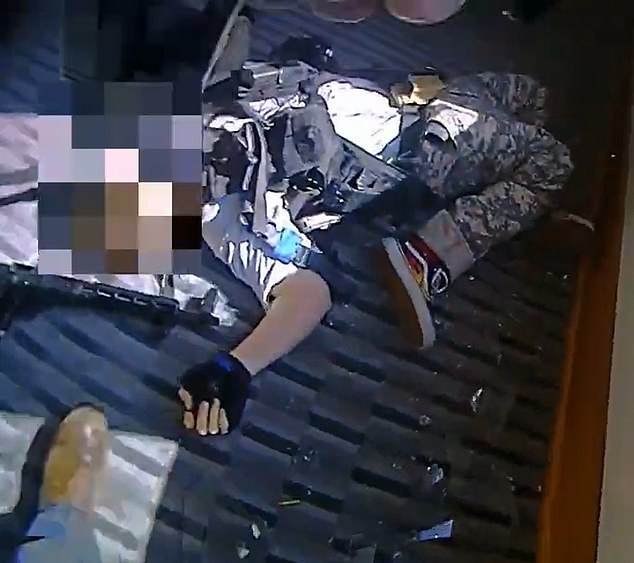Après l'avoir abattue, les policiers se sont approchés de Hale. On peut voir ses armes et son gilet pare-balle