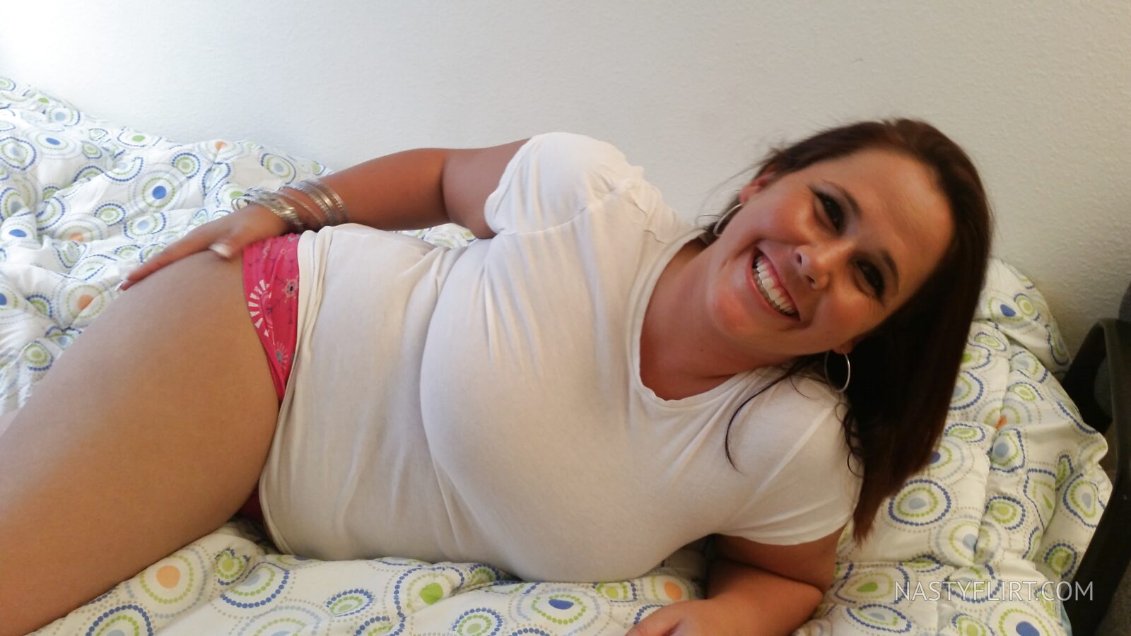 Découvrez l'amatrice Babs, une belle brune aux seins volumineux vêtue d'un teeshirt blanc et d'une culotte rose, qui se met entièrement nue sur son lit. Un moment de sensualité à l'état pur.