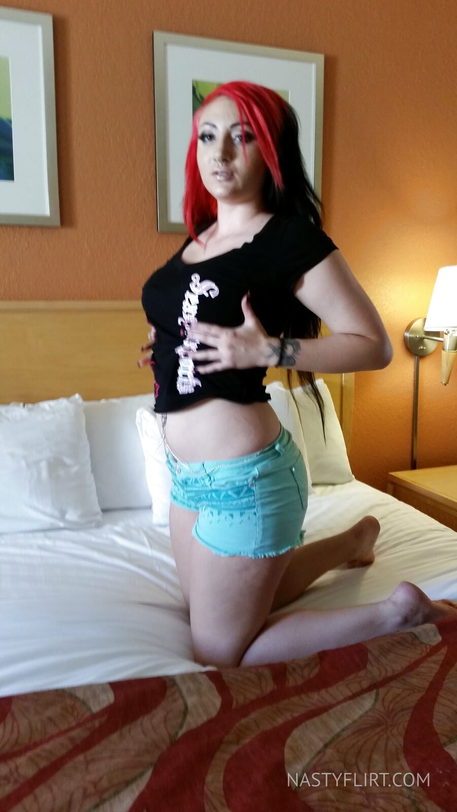 Admirez cette nana mystérieuse aux cheveux teints en rouge et noir se dévêtir avec audace. Plongez dans l'univers érotique de cette beauté provocante sans retenue.