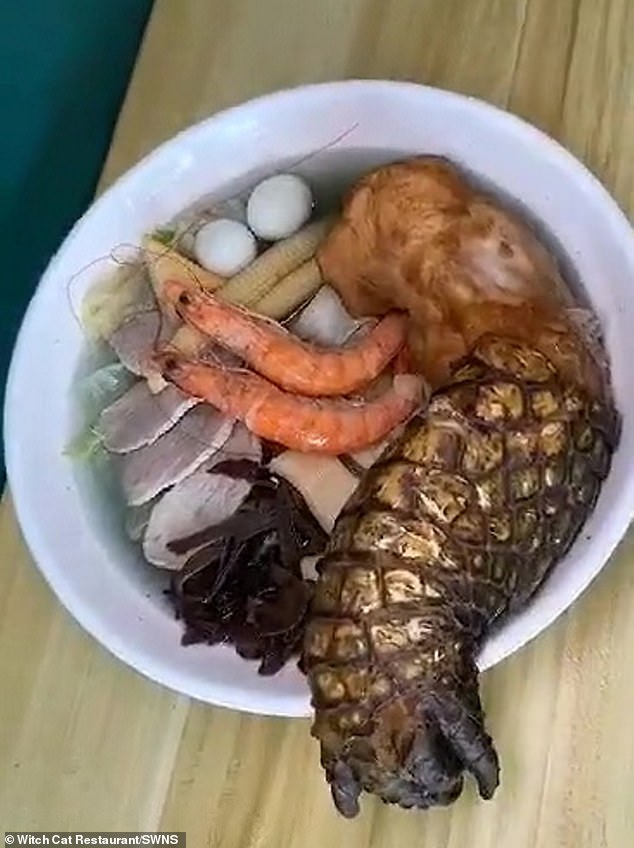 On a déjà vu toutes sortes de ramens, mais jamais rien d'aussi extravagant : une patte de crocodile flottant dans le bouillon. C'est la dernière innovation culinaire du restaurant Witch Cat à Yunlin, Taïwan. Baptisé "Godzilla Ramen", ce plat attire les foules, plus pour son côté spectaculaire que pour son goût. En effet, malgré l'éloge des épices naturelles et des ingrédients frais employés, les clients se pressent surtout pour immortaliser l'assiette plutôt que pour la déguster.